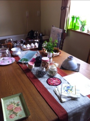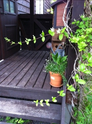 雲間に太陽さんを感じる日となりました!諦めていた素敵なお庭と東屋での時間が持てる事になり、Mちゃん邸は朝から大慌て~主催の二人がなんたって同じリズムなものですから^^; すみませんm(_ _)m素敵なお宅に お手入れした草花
